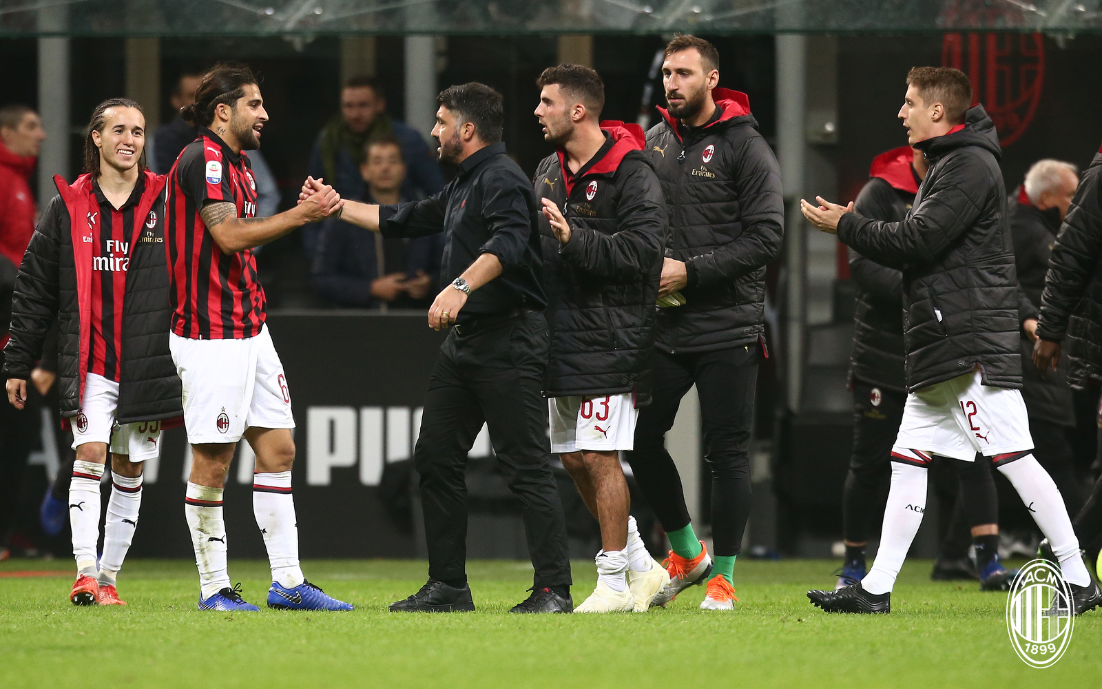 Рино Гатузо го поздравува Рикардо Родригез по завршувањето на натпреварот Милан-Сампдорија, 28 октомври 2018
