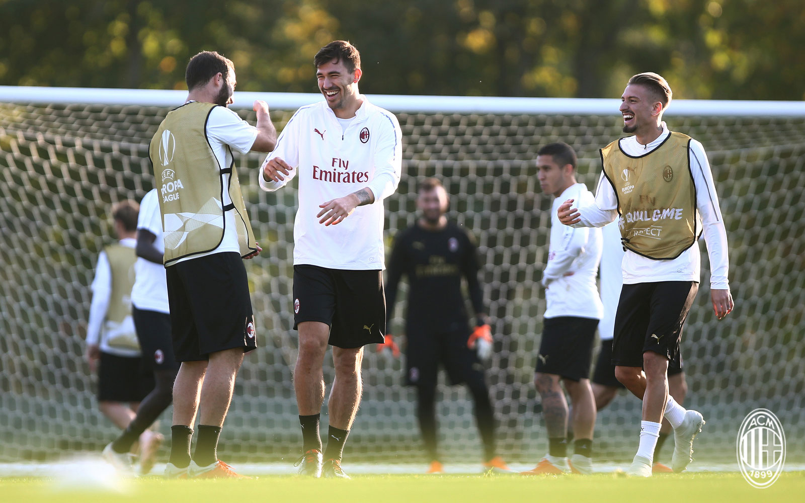 Гонзало Игуаин, Алесио Ромањоли и Саму Кастиљехо на тренинг во Миланело, 2018 година