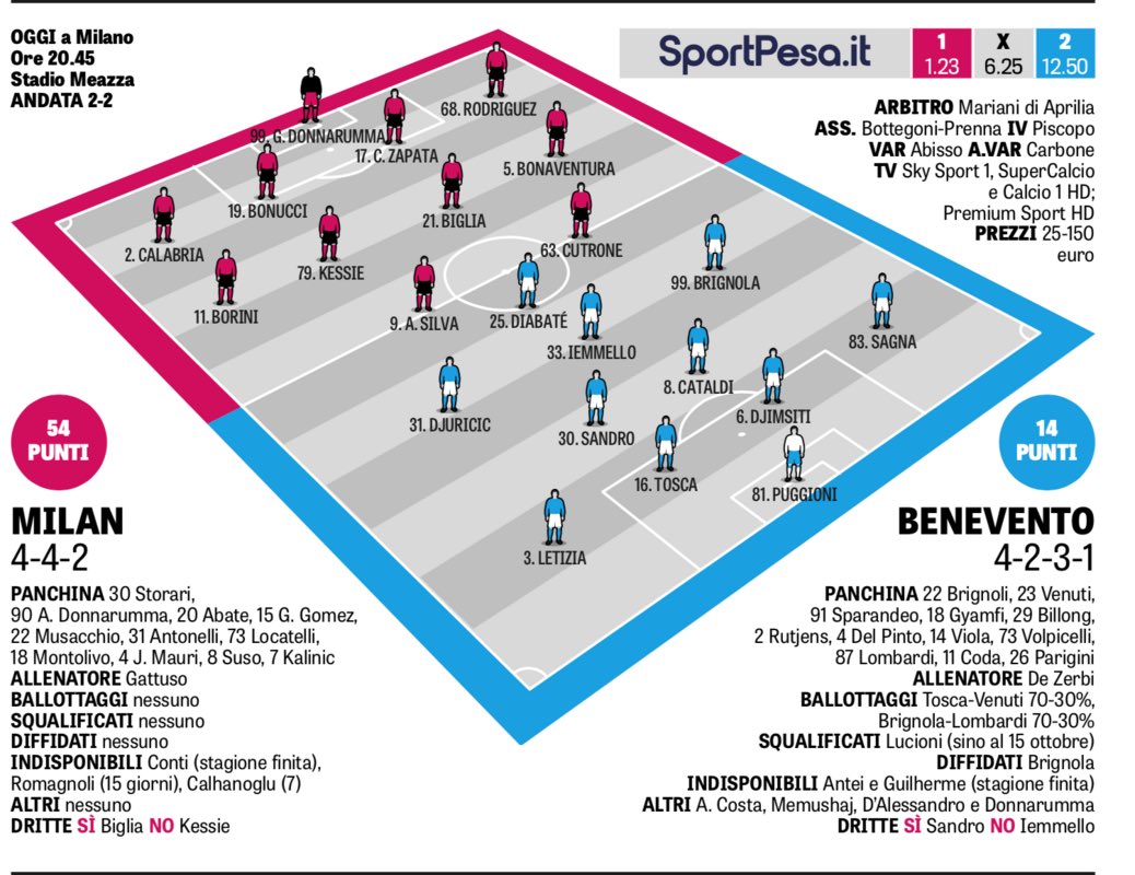 Друго изненадување во составот е тоа што на местото на Сусо се очекува да стартува Борини но гледајќи ја формата во последните неколку месеци на шпанецот, неговата (не)ефикасност сезонава и шпекулациите за негово заминување ова лето одлуката на Гатузо да го одмори е очекувана и оправдана.